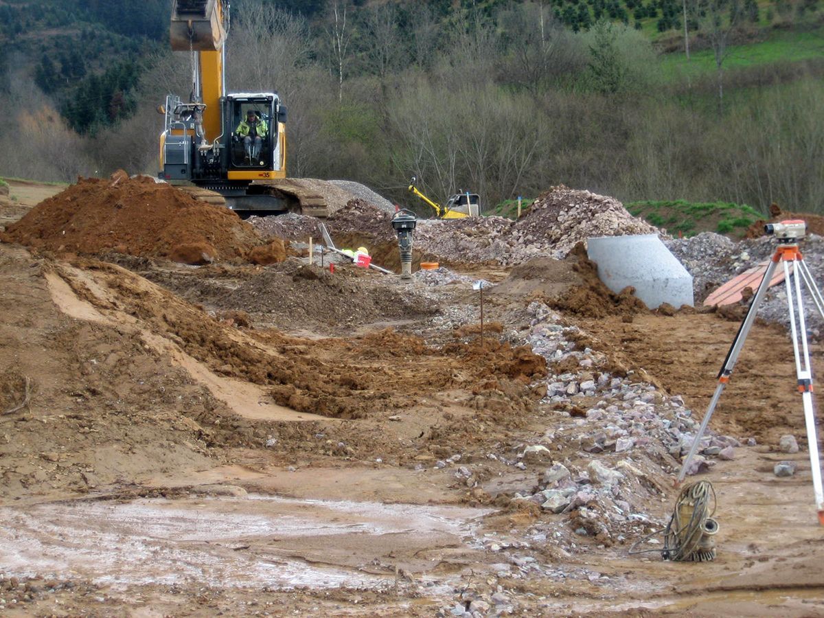 Im Bereich des Lierbach wird das Gelände wiederhergestellt. Im Baugebiet wurde die Bodenverbesserung des Planums durchgeführt. Im Farnweg werden die Schmutz-und Regenwasserkanäle hergestellt.